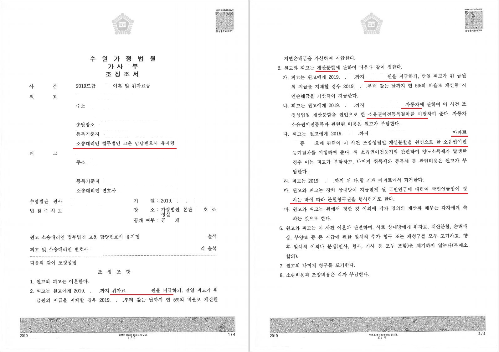 법무법인 고운은 B씨에 대한 재산에 대하여 부동산가압류를 진행하였고, 이혼 등 소송에서 B씨의 A씨에 대한 폭언 및 폭행에 대한 증거와 함께 적극 적인 변론을 하였으며, 또한 B씨에 대한 추가 재산을 사실조회 등을 통해 찾아 재산분할을 함에 있어 A씨에 대한 기여도를 강력히 주장하였습니다.