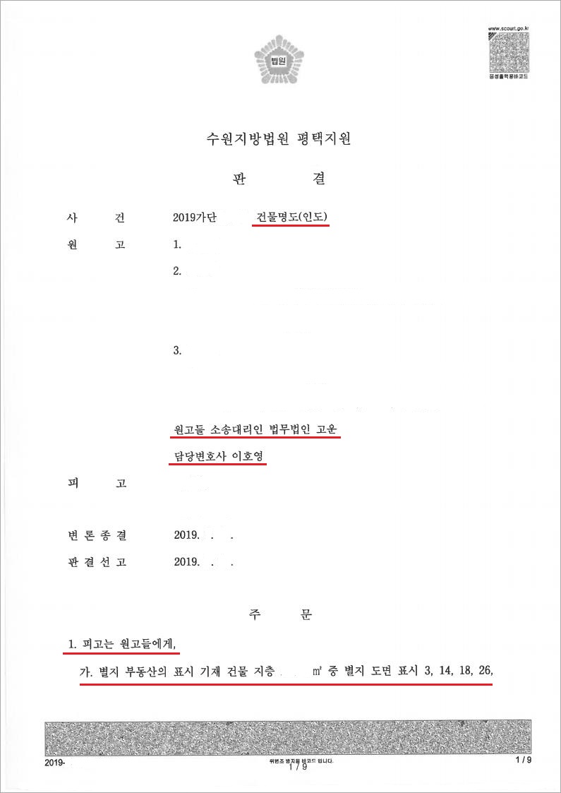 결국 재판부는 법무법인 고운 측의 주장을 전부 받아들였으며, B씨는 A씨에게 건물명도와 임대료 등을 지급하기로 하는 전부승소 판결이 선고되었고, 의뢰인들은 위 판결로 B씨에 대한 강제집행을 할 수 있게 되어 매우 만족하였습니다.