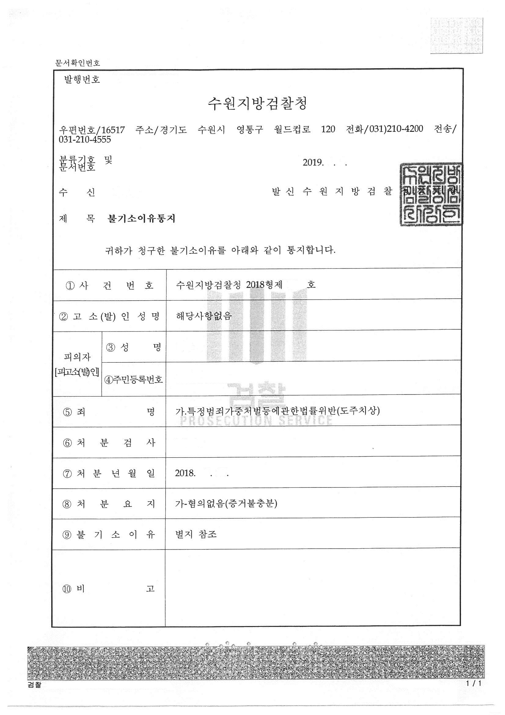 검찰은 저희 법무법인 고운의 주장을 모두 받아들였고, 경찰의 기소의견이었던 특정범죄가중처벌등에관한법률위반(도주치상) 혐의를 무혐의 처분하였으며, 그 결과 운전면허취소처분도 취소되어, 의뢰인은 본래의 생업을 계속 이어갈 수 있게 되어 매우 만족하였습니다.