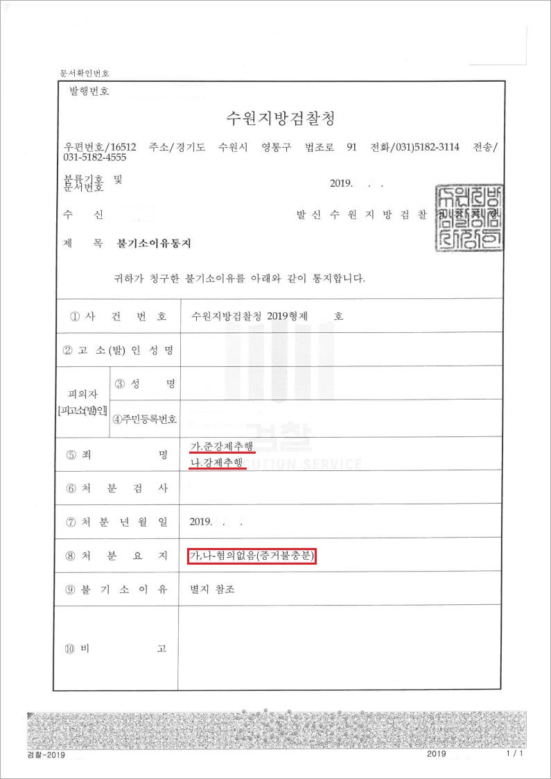 법무법인 고운은 검찰조사에 동석하고, 의뢰인의 이익을 위하여 적극적인 변호인 의견서를 제출하며 검찰을 설득하였고, 그 결과 , 검찰에서는 변호인의 주장을 받아들였고, A씨에 대하여 혐의없음 처분을 하였습니다.