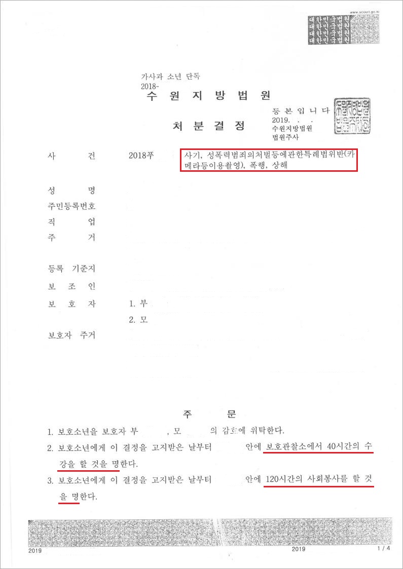 학교폭력위원회에서는 법무법인 고운의 의견을 반영하여 가해학생 B에 대하여 강력한 조치인 “강제전학조치명령”을 내렸으며, 형사고소 사건에서는 가해학생 B에 대하여 보호자 부모 감호에 위탁, 보호관찰소에서 40시간의 수강, 120시간의 사회봉사, 보호관찰 처분결정에 나왔습니다.