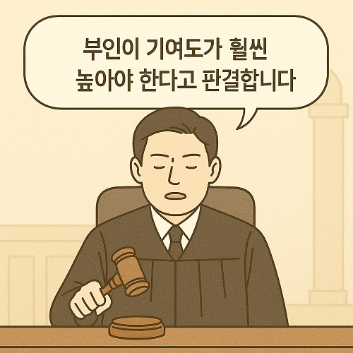 재판부는 여러 고민 끝에 고운 변호사들의 주장을 반영하여, 상속받은 재산을 재산분할에는 산입하되, 그 기여도를 의뢰인에 훨씬 더 유리하게 산정하였습니다.