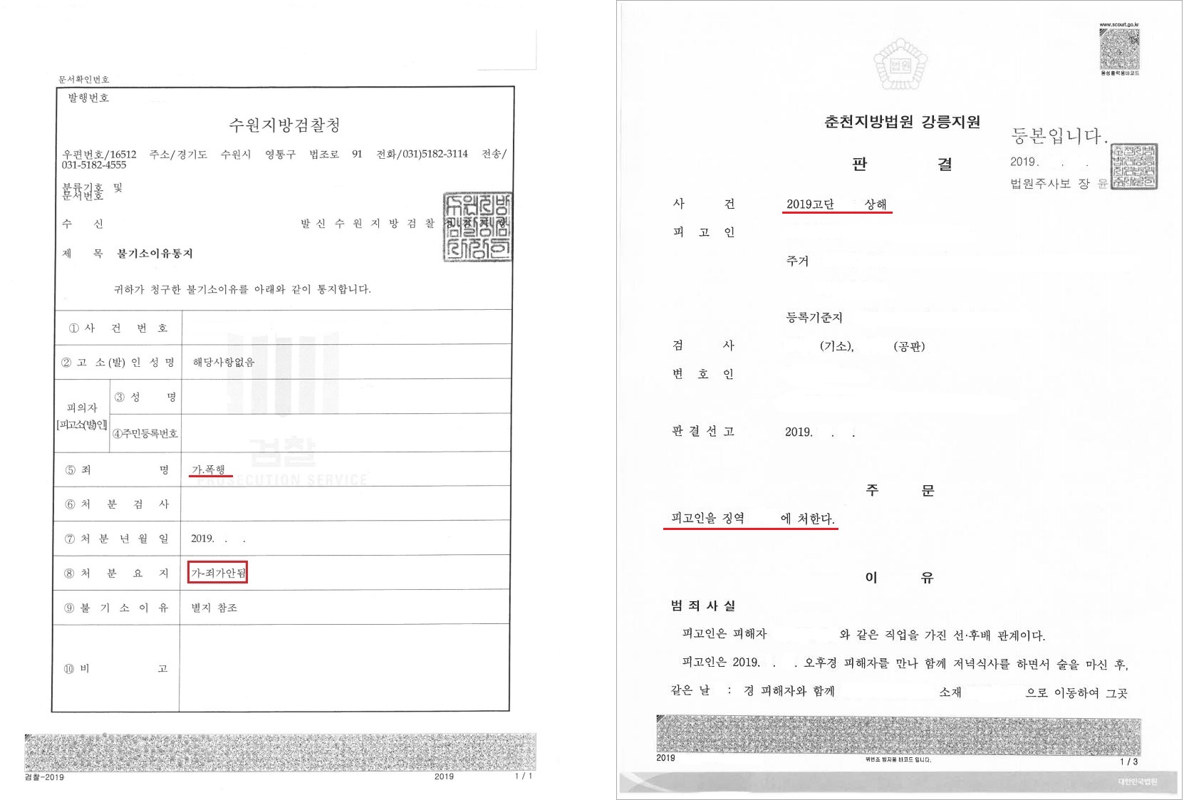 검찰은 법무법인 고운의 변호인 의견을 반영하여, 가해자 B가 허위주장을 하고 있는 것으로 판단하여 B에게는 상해죄로 정식기소 처분을, 의뢰인 A에게는 무혐의 처분을 하였습니다.
