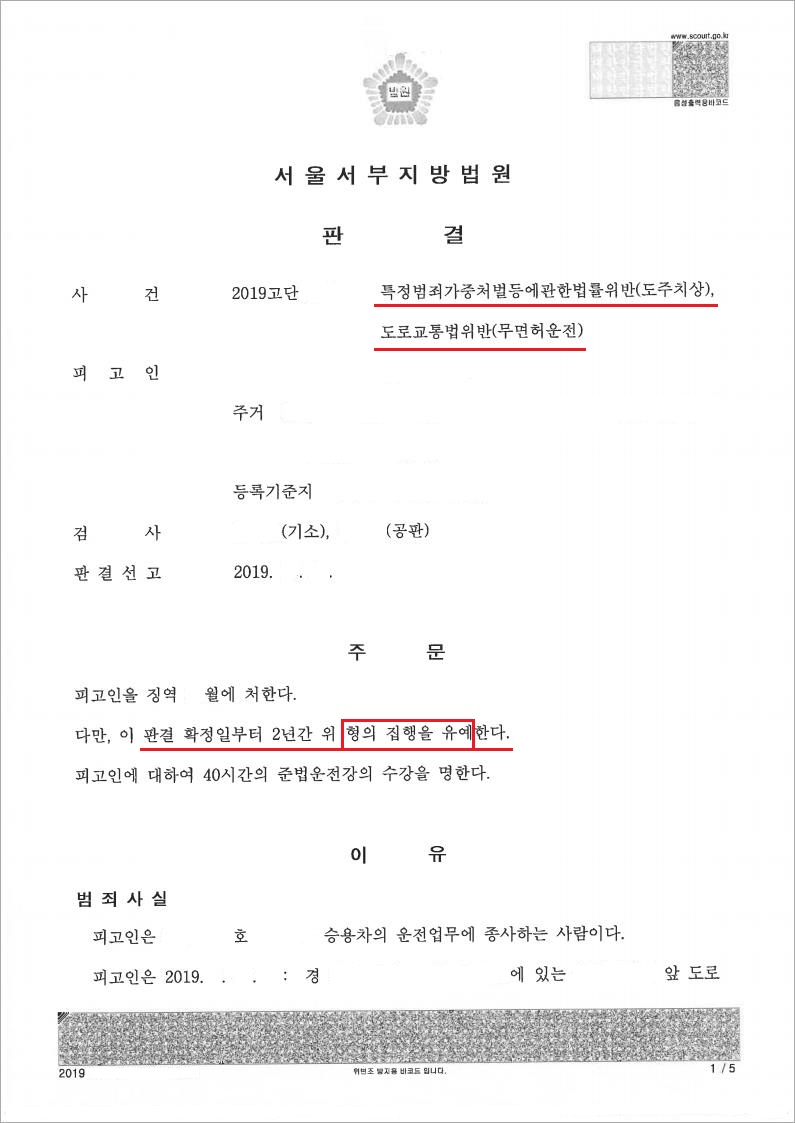 법원 재판부는 변호인의 의견을 반영하여, 결국 검찰에서 구형한 징역형에 대하여 감형 및 집행유예 판결을 선고하였습니다.