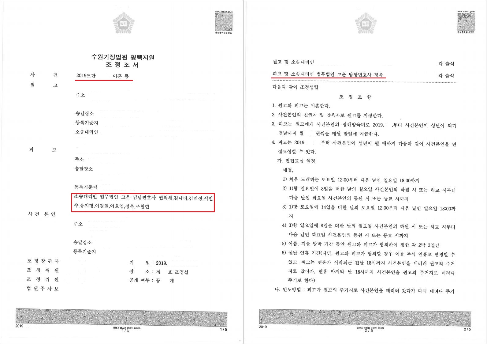 저희 법무법인 고운은 B씨가 의뢰인 A씨에게 수천만원의 위자료 및 재산분할을 청구하는 것이 부당하다는 점에 대하여 적극 주장하였고, 이에 결국 의뢰인 A씨가 B씨에게 지급할 위자료, 재산분할금은 없는 것으로 하고, 양육비 금액 또한 적정히 감액하는 것으로 원만히 조정을 성립시켰습니다.