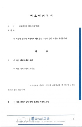 다. 고운 형사전문변호사는 A의 수사기관에 동석해 담당 수사관님에게 상대방 측의 고소 내용이 거짓되거나 과장되어있고, 제출한 녹음 파일 등 증거자료에 문제가 있음을 지적했습니다. 또한 조사가 끝난 후 조사 내용을 바탕으로 A의 행위는 아동학대가 성립할 수 없다는 점을 유사판례를 언급하여 적극 주장하는 변호인 의견서를 작성하여 제출하였습니다.