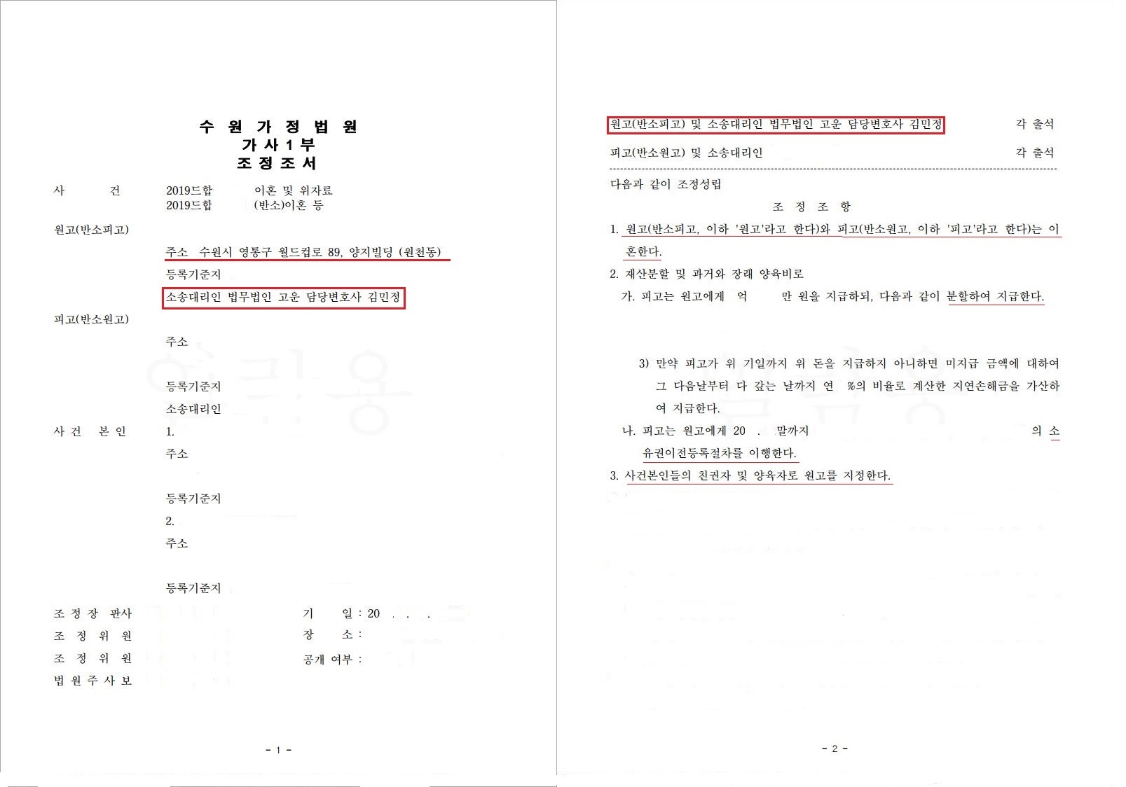이에 저희 법무법인 고운에서는 비록 B씨가 부모님으로부터 상속받은 재산이라고 하더라도 B씨의 특유재산으로 볼 수 없다는 점에 대하여 적극 주장 입증하였고, A씨의 기여도에 대한 부분도 충분히 설명하여, 결국 조정 절차에서 A씨는 B씨가 상속받은 재산에 대하여도 재산분할을 받게 되어 기존에 보유하고 있던 재산에 더하여 수억 원의 재산을 추가로 받게 되었습니다. 또한 A씨는 수년간의 별거기간 동안 B씨로부터 양육비를 받지 못하였으나, 조정 절차를 통하여 자녀들에 대한 친권자 및 양육자로 지정되면서, 이례적으로 과거양육비와 장래양육비를 일시금으로 한 번에 지급받는 내용으로 원만히 조정이 성립되었습니다.
