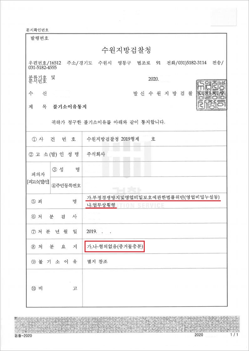 검찰은 법무법인 고운의 주장을 받아들였고, 결국 의뢰인 A씨는 부정경쟁방지및영업비밀보호에관한법률위반과 업무상횡령에 대하여 모두 혐의없음 처분을 받게 되었습니다.