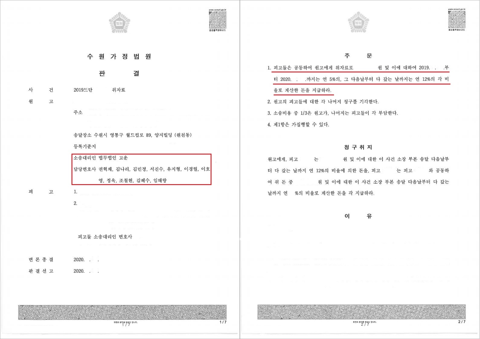 B씨와 C씨는 부정행위가 혼인 파탄과 무관하다고 주장하며 위자료 책임을 부인했지만, 저희 법무법인 고운은 파탄의 원인이 그 부정행위에 있음을 적극 주장·입증했습니다.