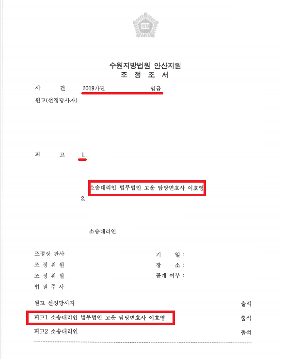재판부와 건설업체 B는 법무법인 고운의 증거자료와 주장을 모두 인용 및 인정하였고, 결국 건설업체 B가 근로자들의 임금을 모두 지급하는 것과 더불어 의뢰인 A씨에게 청구한 근로자C씨의 소를 모두 취하 하고, 근로기준법위반으로 기소된 형사사건에 대하여 고소취하 및 처벌불원서를 제출하는 것으로 원만히 조정이 성립되었습니다.