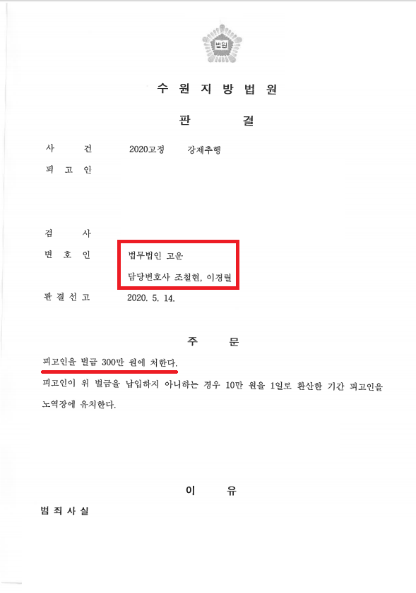이에 재판부는 의뢰인 A씨에게 800만원의 약식명령을 300만원으로 감액하여 선고, 나아가 의뢰인 A씨의 신상정보, 취업제한 처벌을 제외하고 벌금형만이 선고되었습니다.