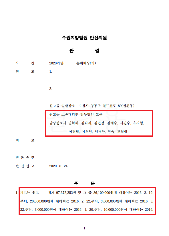 그 결과 의뢰인 A, B씨는 C씨에게 지급한 금원의 전부 및 대출이자를 포함하여 지급받는 것으로 전부승소 판결을 이끌어 내었습니다.