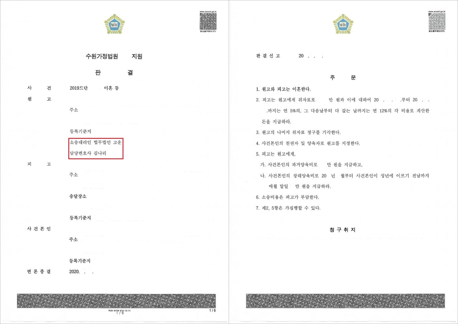 결국 재판부는 A씨가 청구한 대부분의 청구를 받아들여, 의뢰인 A씨는 B씨와 이혼을 하며 B씨로부터 위자료를 지급받고, 자녀의 친권자 및 양육자로 지정되며 과거양육비 및 장래양육비를 지급받는 내용의 판결을 받게 되었습니다.