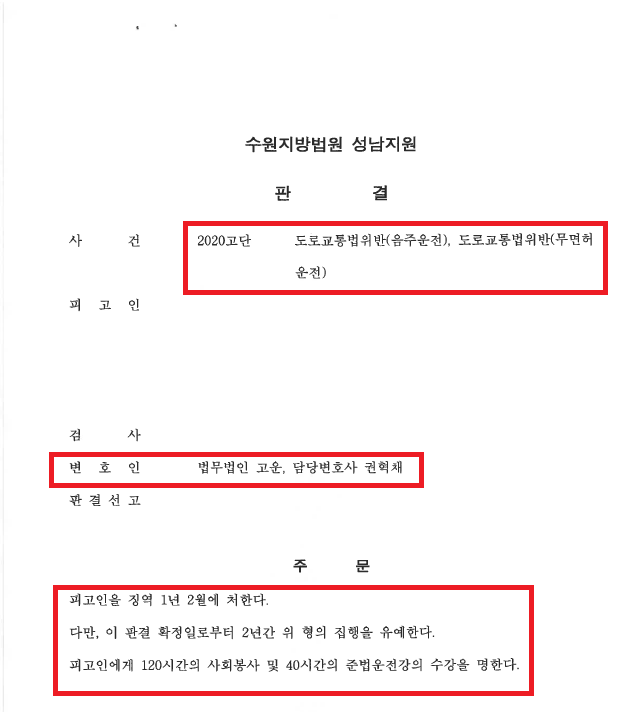 법무법인 고운은 의뢰인이 벌금형을 초과하는 범죄전력은 없는 점, 반성하는 태도를 보이는 점, 채혈측정이 혈중 알콜농도가 상승하는 구간에 이루어진 점, 자신의 차가 아닌 회사의 차량을 반납하기 위해 짧은 거리를 운전한 점 등 양형에 있어서 참작될 수 있는 사안에 대하여 적극적인 변론을 하였습니다.