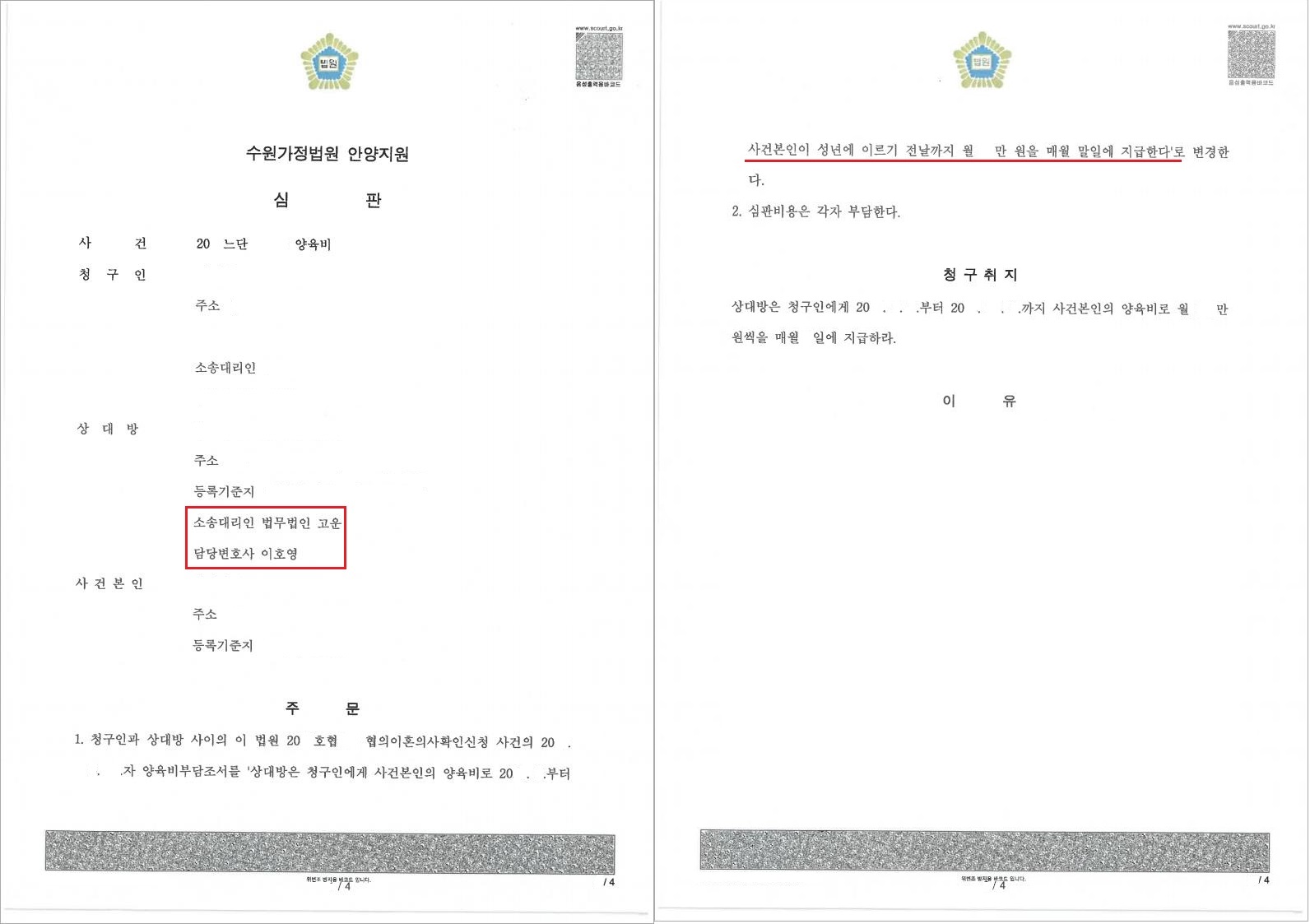 저희 법무법인 고운은 소송 중 사실조회 신청 등을 통하여 청구인 B씨의 재정상황 등을 파악하여 협의이혼 당시 B씨가 양육비를 받지 않기로 협의한 경위에 비추어 보았을 때 B씨의 청구는 형평에 반한다는 점에 대하여 적극 주장하였고, 그 밖의 A씨와 B씨의 경제적 능력 및 양육상황 등 사정에 비추어 보더라도 B씨의 청구 내용에 불합리한 부분이 있다는 점에 대하여 적극 소명하였습니다.