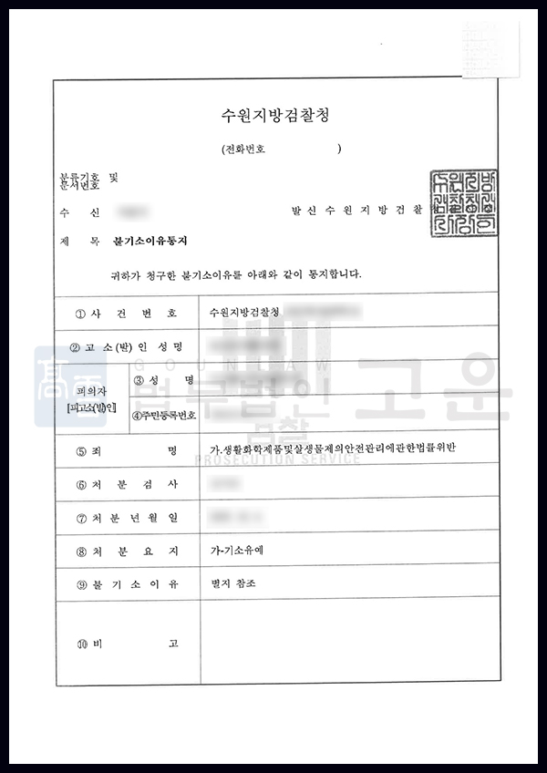 가. 일상생활에서 자주 사용하는 방향제나 향초 등은 화학제품에 해당하여, 잘못 사용될 경우 위험해 질 수 있기 때문에 국가에서 관련 법을 제정하여 관리하고 있습니다. 화학제품안전법에 대하여 잘 알지 못하는 상태로 판매나 제조를 하다 적발되면 행정처분뿐 아니라 형사처벌까지 받을 수 있습니다. 혐의가 확정될 경우 처벌과 함께 영업정지등의 행정처분으로 사업에 불리한 영향이 미치게 됩니다. 때문에 기소유예나 불기소 처분 등 처벌을 피하는 것이 중요한 상황이었습니다.