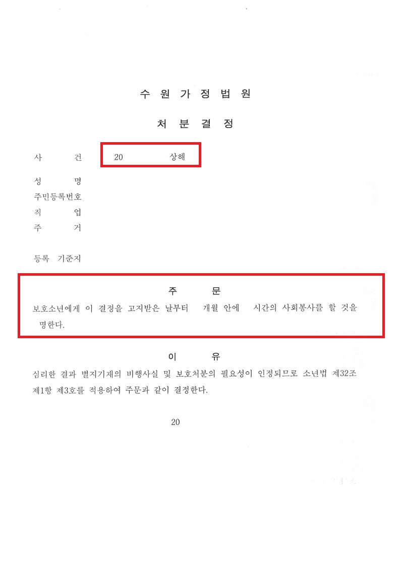 그 결과 재판부는 벌금형 대신 3호 보호처분(사회봉사)을 결정하여 전과 없이 사건을 마무리할 수 있었습니다.