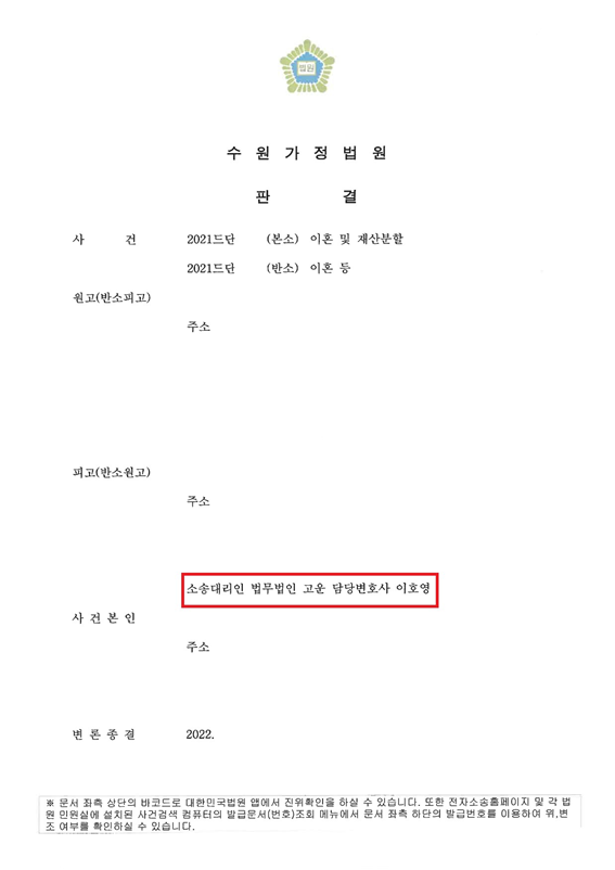 A씨는 이혼에는 동의하는 입장이었으나 나머지 청구에 대해 대응하기 위하여 저희 법무법인 고운을 찾아주셨습니다.