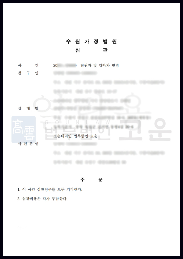 본 사건은 양육자 변경 시 단순히 양육자의 사정만을 고려하는 것이 아니라, 자녀의 복리를 최우선으로 하여 현재의 양육 환경을 변경하는 것이 과연 자녀에게 최선인지 여부가 결과에 중요한 영향을 준다는 것을 다시 한 번 확인시켜 준 의미 있는 성공 사례입니다.