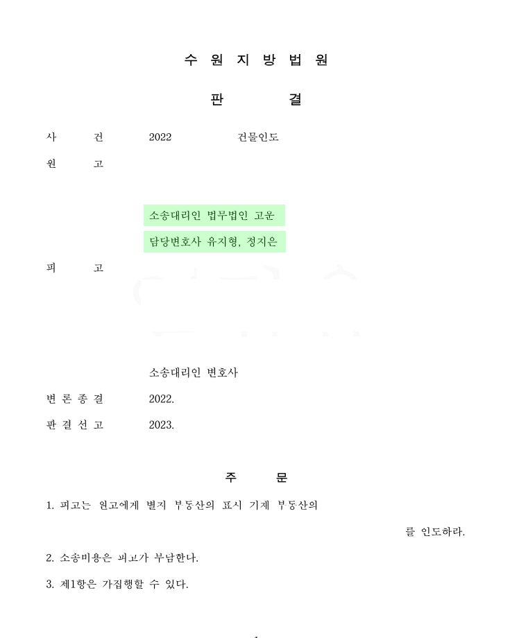 재판부는 법무법인 고운의 주장을 인용하여 B씨가 A씨에게 부동산을 인도하는 것은 물론, 보증금도 반환받을 수 없으며 소송비용도 부담해야 한다는 판결을 내렸습니다. A씨는 20년이 넘는 오랜 시간이 걸리긴 했지만, 결국 정당한 자신의 권리를 되찾게 되었다는 사실에 매우 만족하였습니다.