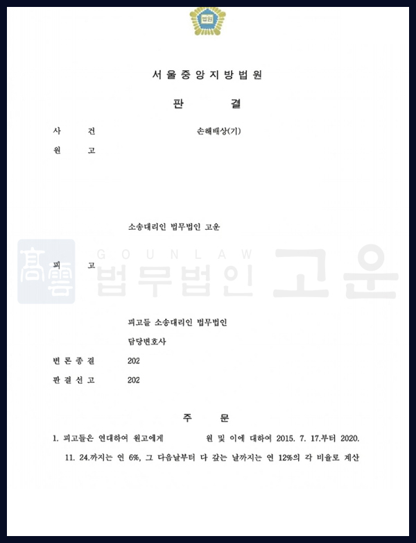 재판부는 법무법인 고운의 주장을 받아들여 인테리어비가 과도하게 부풀려졌다는 주장은 배척하고, B씨는 A씨에게 매출에서 비용을 제외한 수익금을 분배하라고 판단하여, 의뢰인 A씨의 손해배상 청구를 인용하였습니다. 의뢰인 A씨는 소송 결과에 매우 만족하셨습니다.