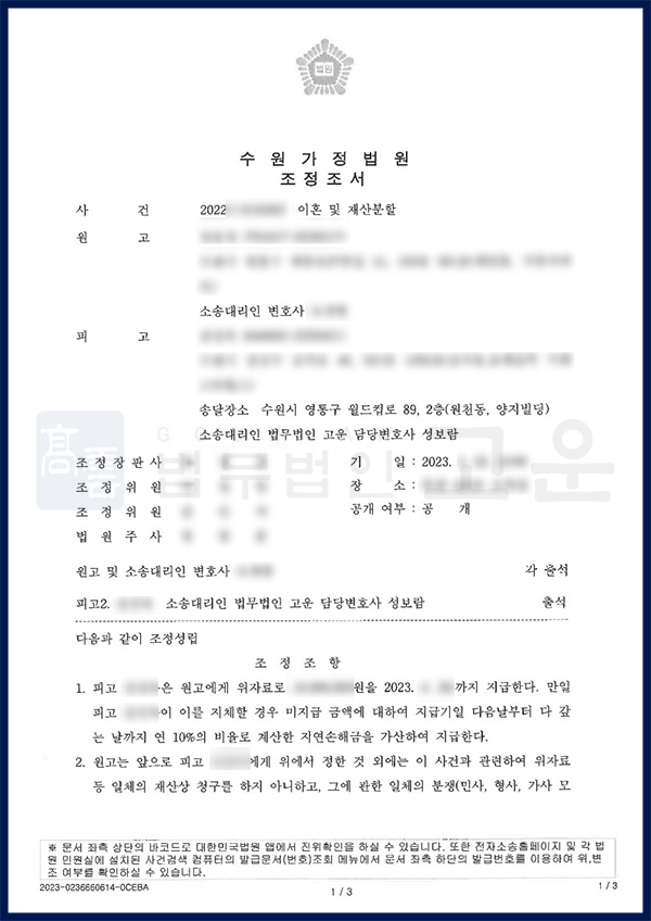 그 결과 C씨가 청구한 위자료 금액의 2/3 가량을 감액하는 좋은 결과를 얻을 수 있었으며,