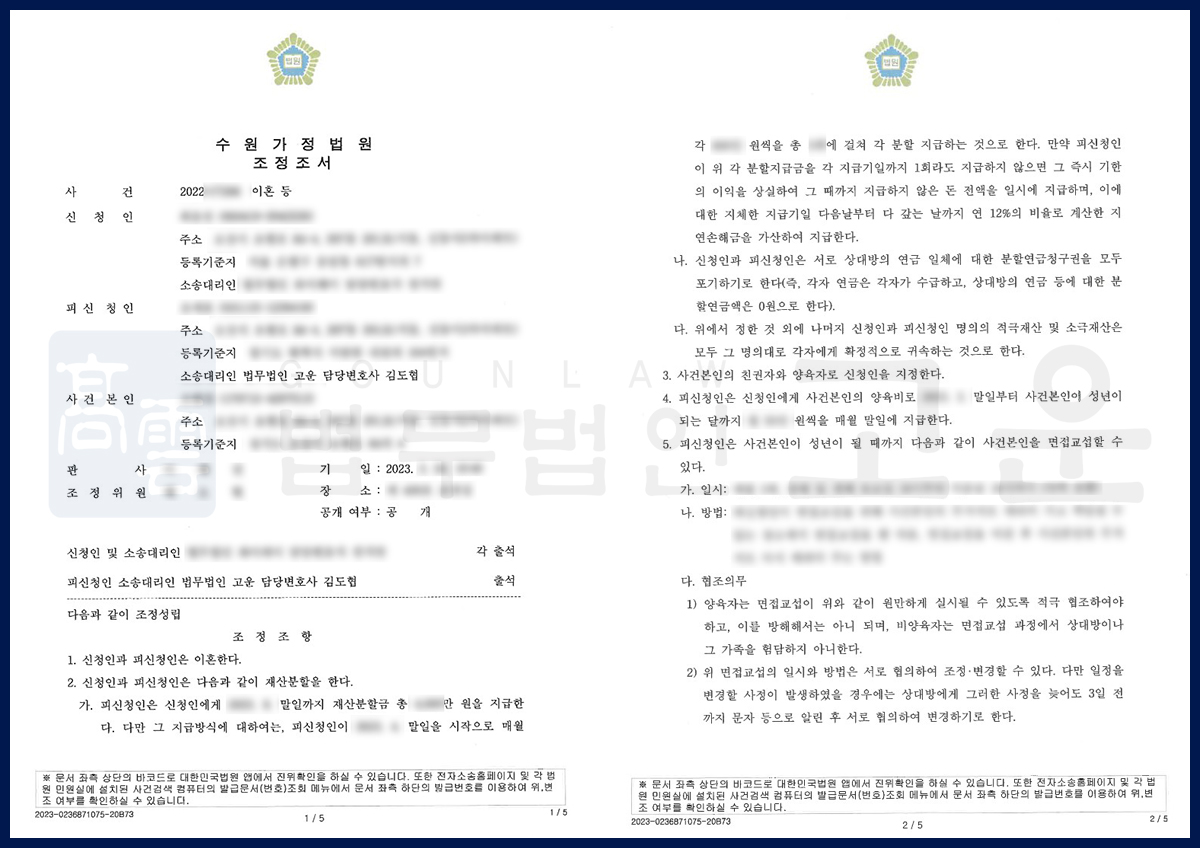A씨는 가출 후 이혼조정을 신청한 배우자 B씨의 과도한 위자료·재산분할 청구에 대응해 법무법인 고운에 의뢰했습니다. 고운은 혼인 파탄의 책임이 B씨에게 있고 A씨의 재산 형성 기여도가 크다는 점을 입증했습니다. 그 결과 B씨의 위자료 청구는 전부 기각되고, 재산분할도 약 70% 감액된 금액으로 조정이 성립되었습니다.